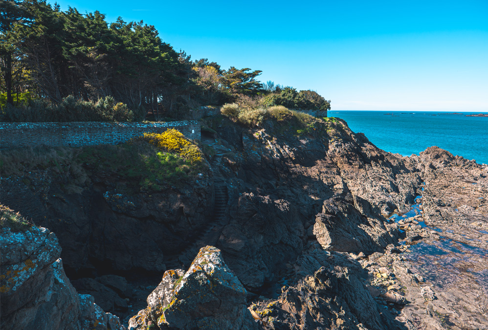 Le long des falaises de Dinard, le sentier côtier déroule tranquillement ses paysages. Puis, en contrebas, une ouverture sombre attire le regard. Discrète, presque cachée, la Goule aux Fées se dévoile à marée basse, comme un secret que l’océan accepte de partager… mais seulement pour un temps.