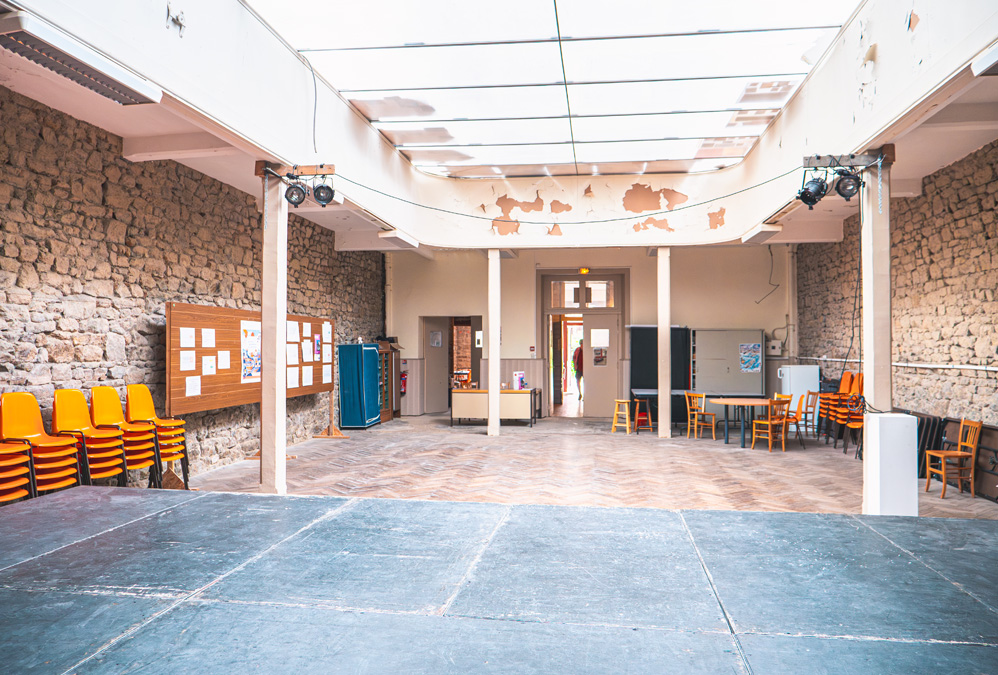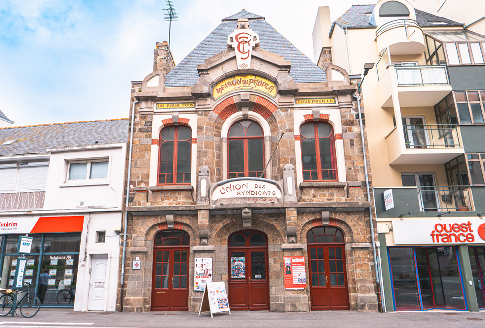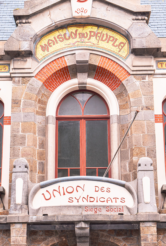 Construite à la fin du XIXᵉ siècle, la Maison du Peuple de Saint-Malo a longtemps été un lieu central de la vie ouvrière et associative. On y venait pour se réunir, débattre, apprendre, parfois s’organiser. Ce bâtiment n’a jamais cherché à impressionner par l’apparat, mais par sa fonction première : rassembler. Cela se ressent encore aujourd’hui dans ses volumes simples, sa lumière et les traces laissées par le temps.