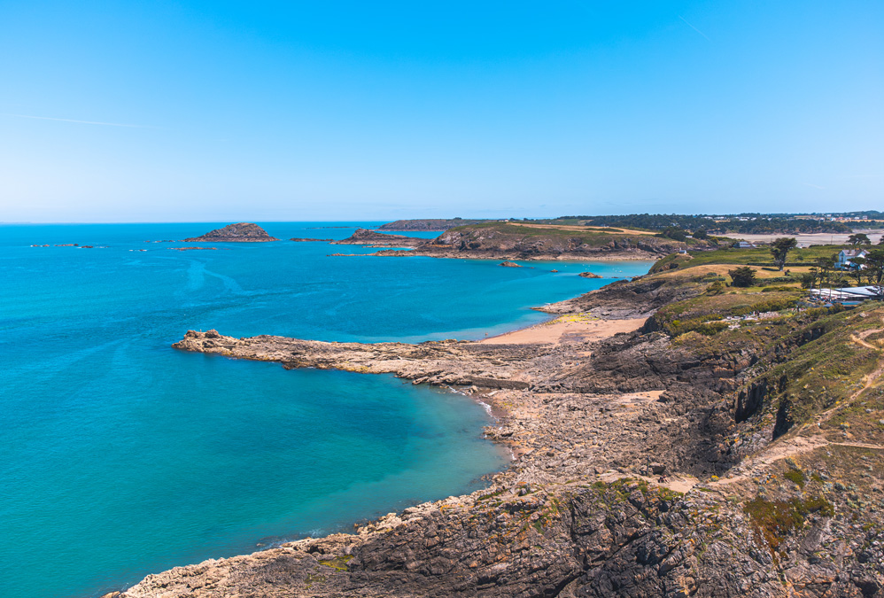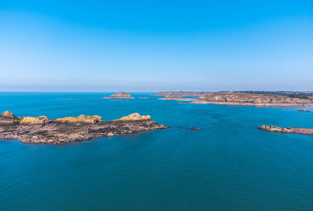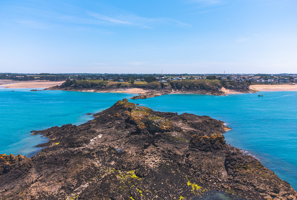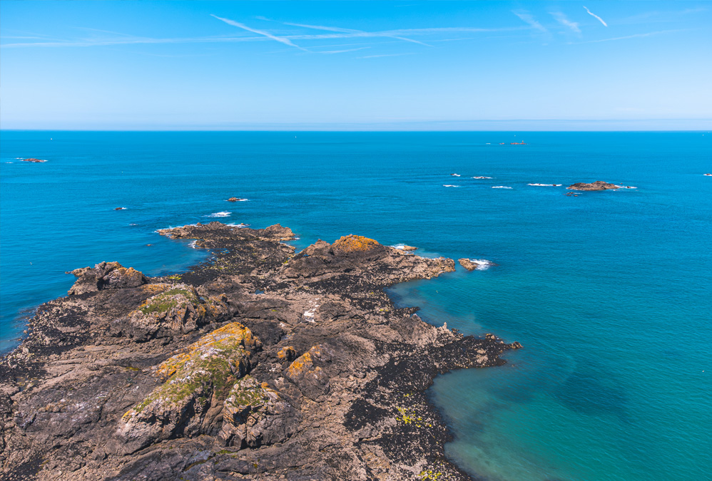 Se promener le long des sentiers ou la survoler en drone, c’est découvrir un paysage changeant au fil de la lumière et des marées : les reflets dorés du soleil sur la mer, le bleu profond de l’océan, et au loin, les silhouettes des voiliers qui semblent flotter entre ciel et mer. La Pointe de Bezouh est un endroit où chaque angle offre un nouveau regard, un lieu idéal pour capturer la force et la poésie de la côte malouine.