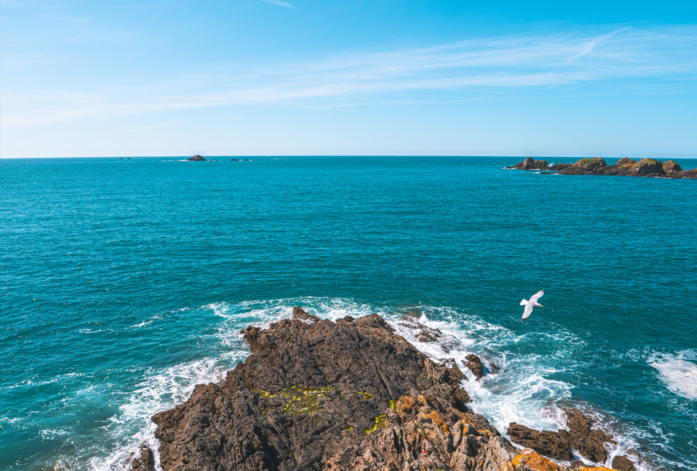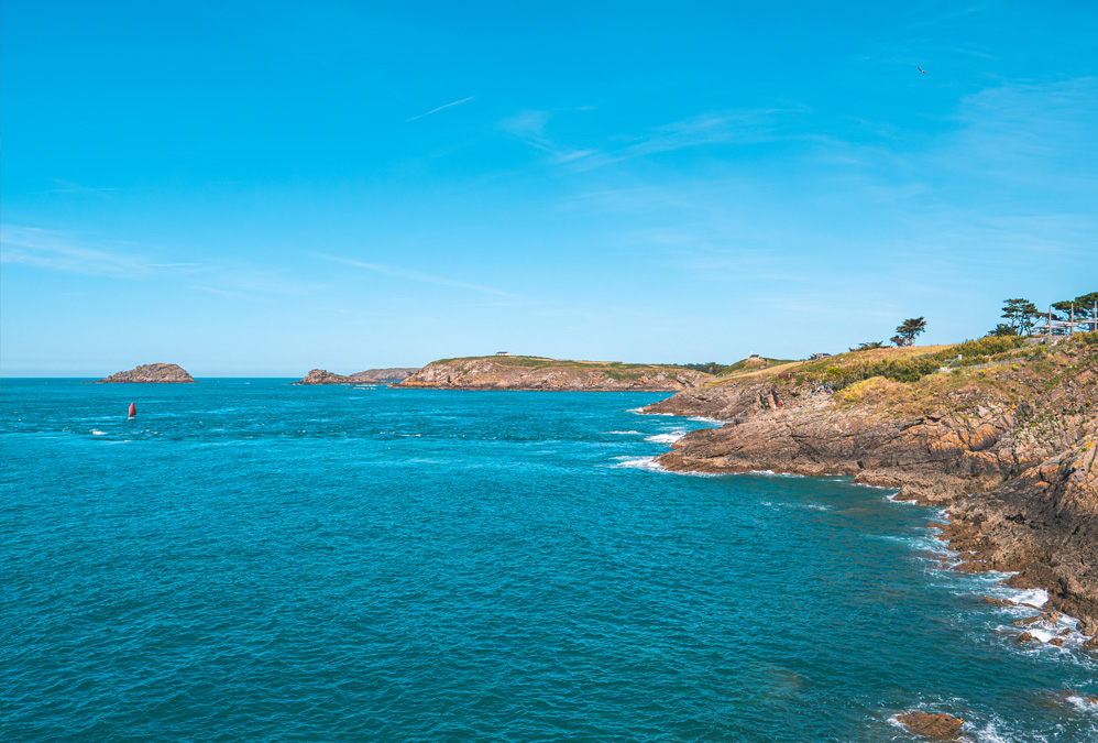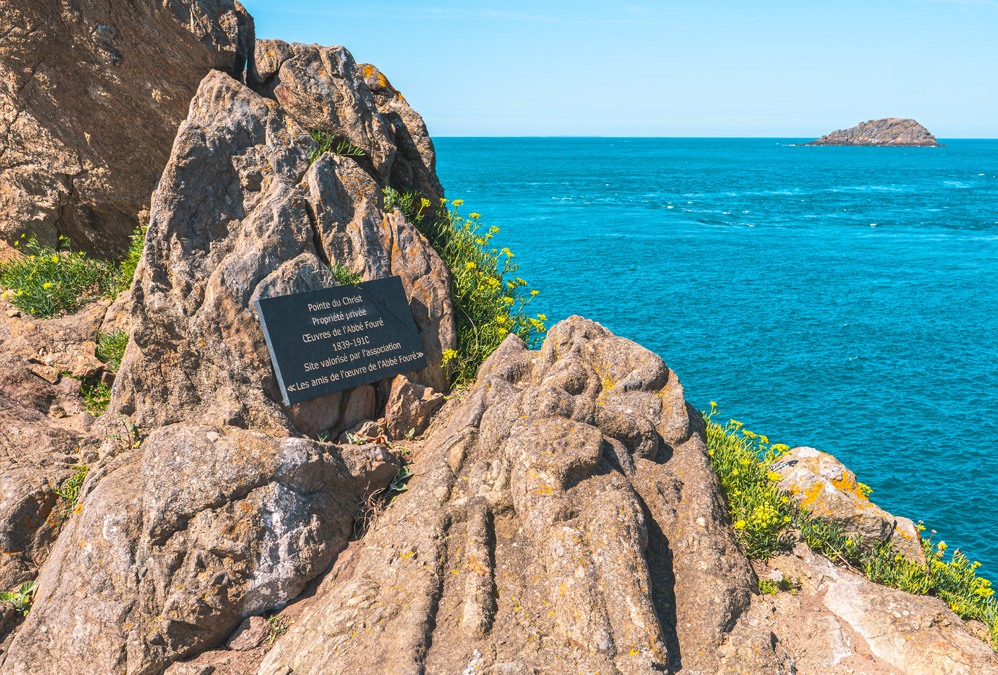 Posée entre la mer et les vents, la Pointe du Christ s’avance comme une sentinelle de granite à l’extrémité de Rothéneuf. Depuis ce promontoire battu par les embruns, la Côte d’Émeraude dévoile l’un de ses paysages les plus bruts : falaises sombres, éclats de vagues et lumière changeante qui transforme la mer du bleu profond au vert turquoise.