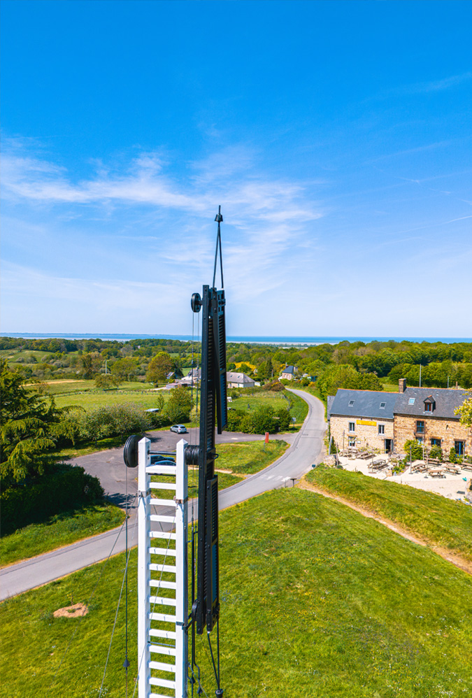 Au-delà de son intérêt historique, le choix de ce site ne doit rien au hasard. Perché sur une falaise morte, l’édifice offre une vue imprenable sur le Marais de Dol qui s’étend à ses pieds, tandis que la silhouette du Mont-Saint-Michel se découpe à l’horizon face à l’immensité de la baie. Même sans en franchir le seuil, la silhouette de la tour et ses mécanismes extérieurs offrent un contraste saisissant avec la sérénité du paysage breton. C’est un lieu unique où le génie humain rencontre enfin la beauté brute de la nature.
